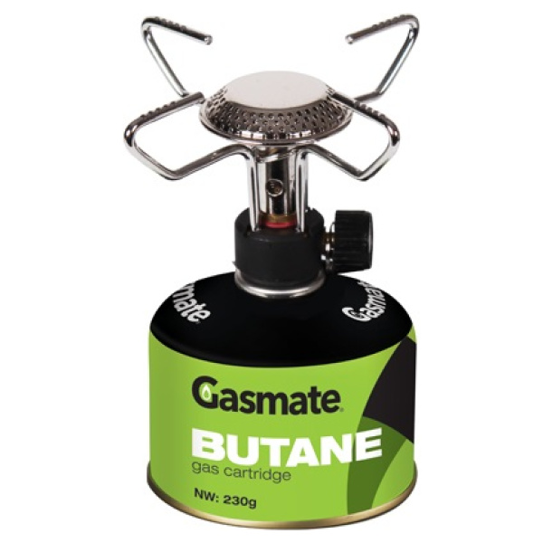 This Gasmate’s Backpacker Stove features a piezo for easy lighting and a windshield to protect your flame from the elements. It produces 9,950 BTUs from a screw in butane canister (sold separately) and will boil 1 litre of water in approximately 4.5 minutes. This Backpacker Butane Stove weighs only 280g which makes it perfect for backpacking or hiking alone. It also comes with its own carry pouch, just pack it away into your bag and set it up in no time. Features: Lightweight and compact, ideal for backpacking Windshield Robust stainless steel burner Precise flame adjustment Handy carry pouch included Use with screw type butane canisters Approved to NZ standards Specifications: Ignition: Piezo Output: 9,900 BTU Gas Consumption: 204g/hr Weight: 280g