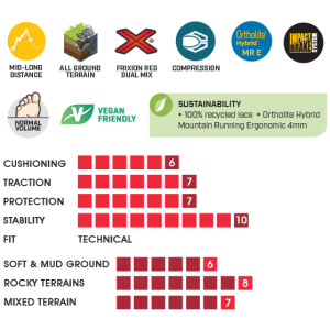 + FriXion® Red bi-compound outsole features varied contact surfaces guaranteeing maximum grip on all types of terrain