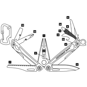 A great choice for first time users, this is one Sidekick you will always want at your side! With 14 tools in total, the handy pocket-sized tool has all the features you need to get your project done, at a fraction of the cost. The handy, outside accessible blades mean you can open the knife with just one hand. The rounded handles make it easy to get a grip around the spring-action jaws. Made from Stainless Steel and backed by a 25-year warranty, as a first choice or handy second backup, you can’t beat the value of the Sidekick. Features: Lanyard ring Attaches tool securely to a lanyard. Great for people who want to use their tool near water or on scaffolding Replaceable pocket clip: Allows you to wear your multi-tool attached to your pocket or belt loop without using a sheath Outside-accessible features: Knife and saw blades can be accessed while the tool is folded or closed, for extra convenience One-hand operable features: Every tool can be opened and operated with one hand, so you can keep your other hand free Carabiner accessory: Features hex bit driver and bottle opener Made from stainless steel: An improved, high-carbon (HC) form of 420 stainless steel. It’s strength is optimised in Leatherman multi-tools by heat treatment. 25-year warranty Guarantees your Leatherman will give you many years of dependable service Tools & Blades 1. Spring-action needlenose pliers 2. Spring-action regular pliers 3. Spring-action wire cutters 4. Wire stripper 5. 420HC straight edge knife 6. 420HC serrated knife 7. Saw 8. Ruler (3.8cm) 9. Can opener 10. Bottle opener 11. Wood/Metal file 12. Phillips screwdriver 13. Medium screwdriver 14. Small screwdriver Measurements Length: 9.7cm Weight: 198.4g Blade length: 6.6cm Available accessories: Standard 4″ Nylon Sheath and Leather Box 4″ Sheath Small.