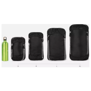 Lightweight, waterproof compression sac that lets air out and keeps contents dry.