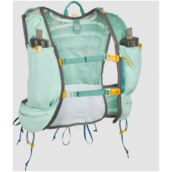 – Comes with 4 hooks and bungee loops to attach trekking poles. These loops can be attached at the front or back of the vest for customisable trekking pole carry options.