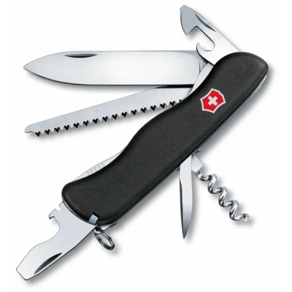 The Victorinox Workman Range 111mm pocket knives are built for the big jobs. All feature large, powerful tools and super-strong liner-locks for safety and reliability. The “Forester Wood” features: 1. lock blade 2. corkscrew 3. can opener with 4. – small screwdriver 5. lockable bottle opener with 6. – screwdriver 7. – wire stripper 8. reamer, punch 9. key ring 10. wood saw